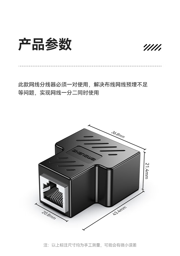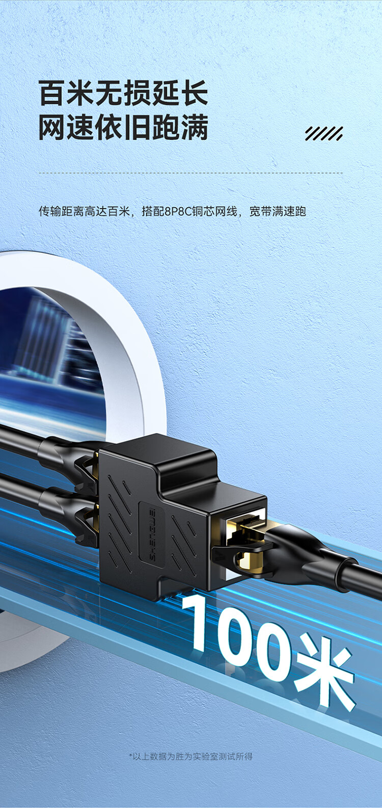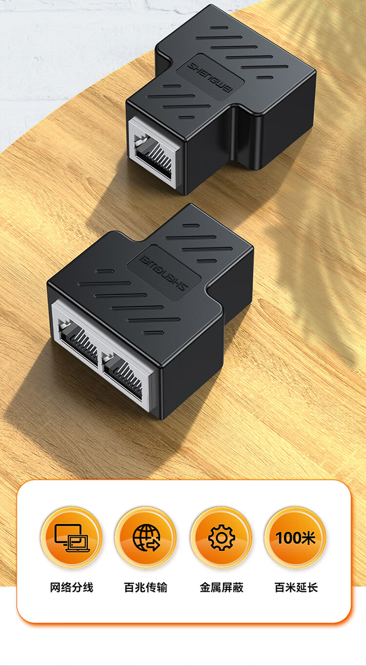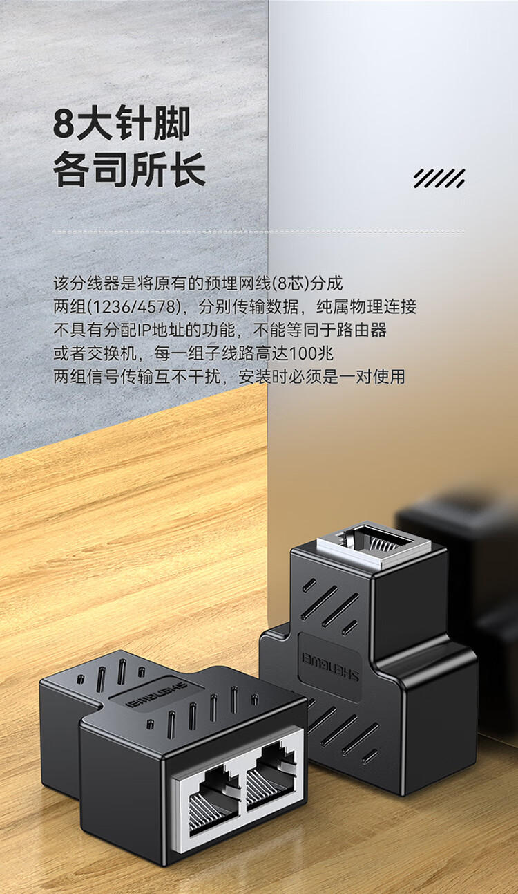 網(wǎng)線分線器 一分二同時上網(wǎng) 勝為網(wǎng)線轉(zhuǎn)接頭 網(wǎng)線延長 網(wǎng)絡(luò)三通頭黑色一對 SH-830