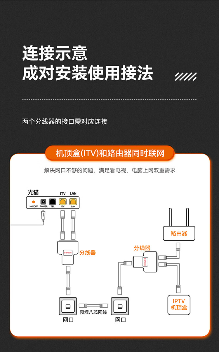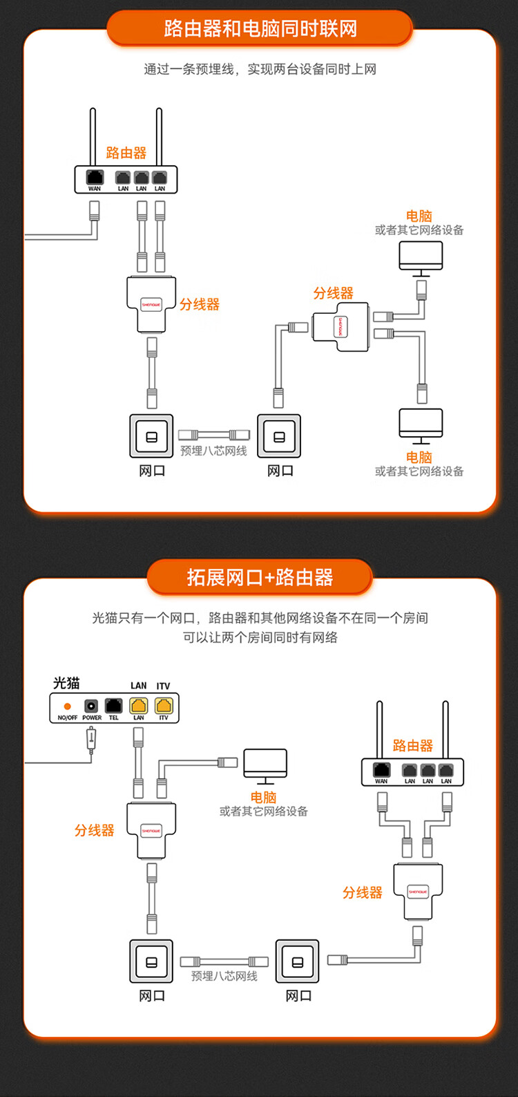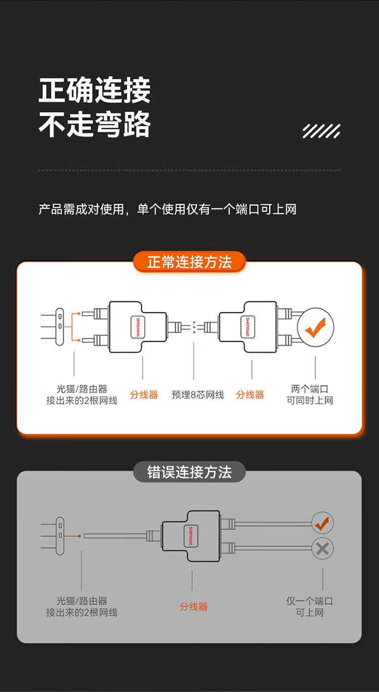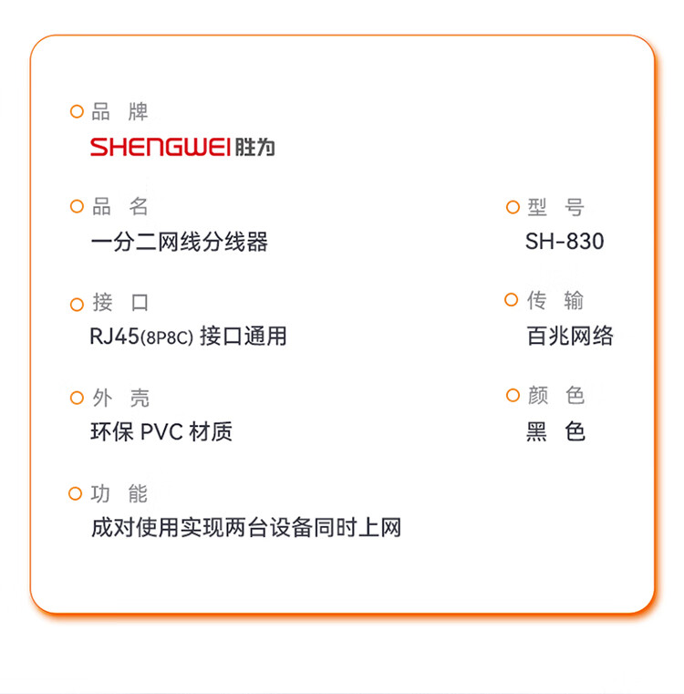 網(wǎng)線分線器 一分二同時上網(wǎng) 勝為網(wǎng)線轉(zhuǎn)接頭 網(wǎng)線延長 網(wǎng)絡(luò)三通頭黑色一對 SH-830