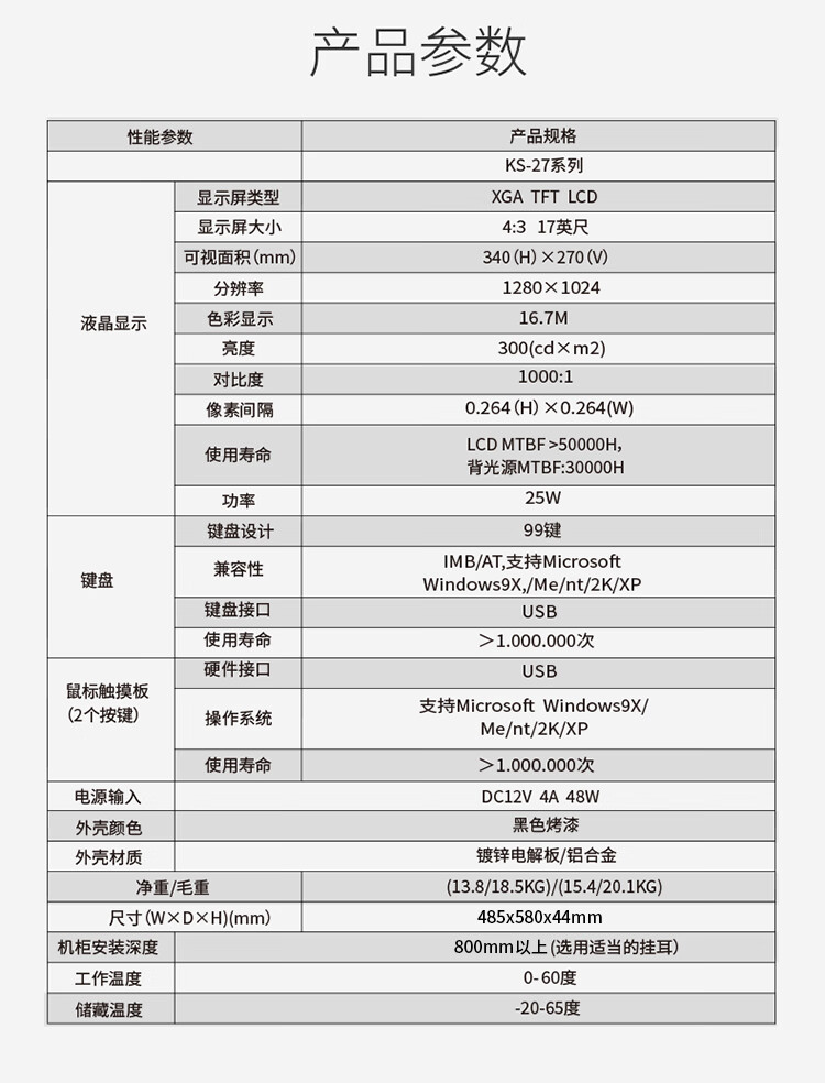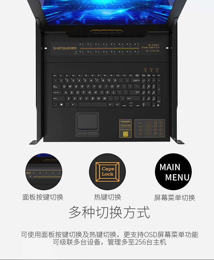 KVM切換器16口 帶17英寸LCD顯示器配VGA接口線 16進(jìn)1出 勝為 KS-2716LCD