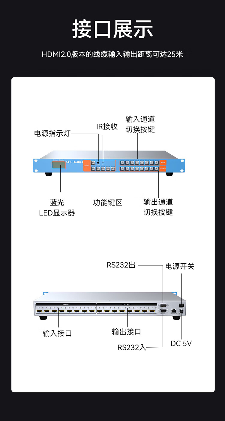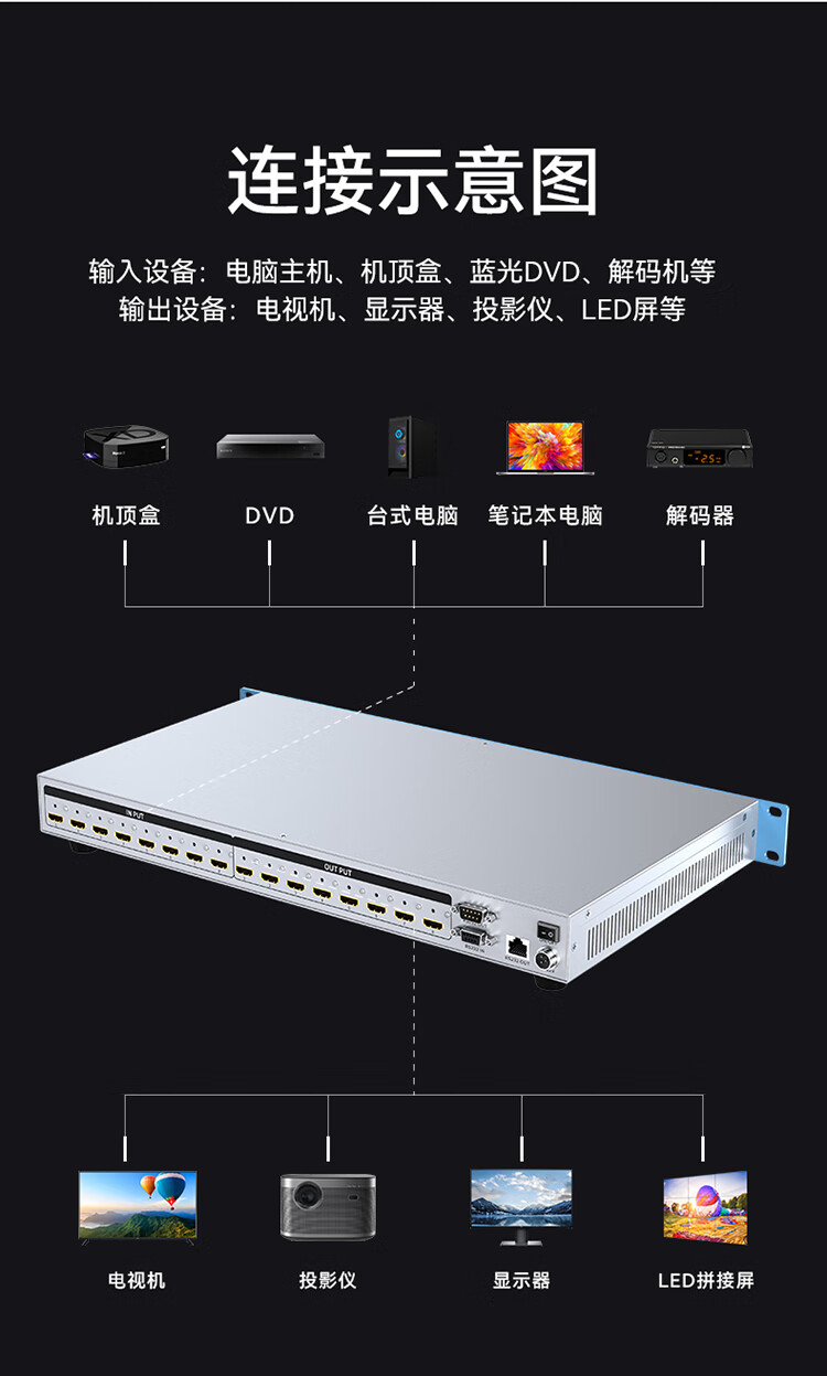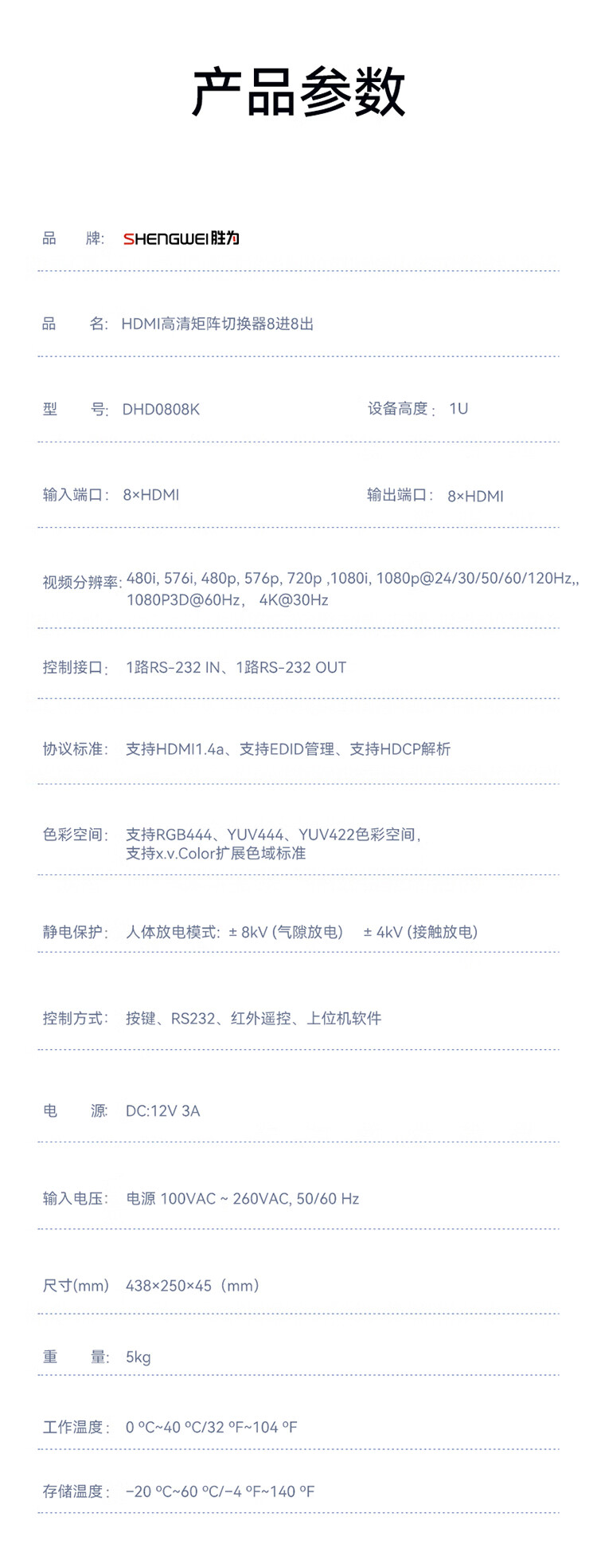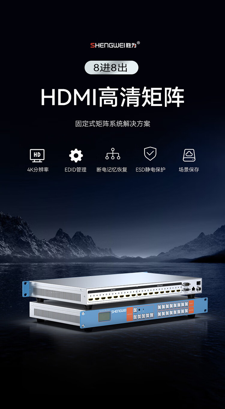 HDMI矩陣切換器8進8出 4K/30Hz高清音視頻同步會議矩陣拼接屏控制器 勝為 DHD0808K