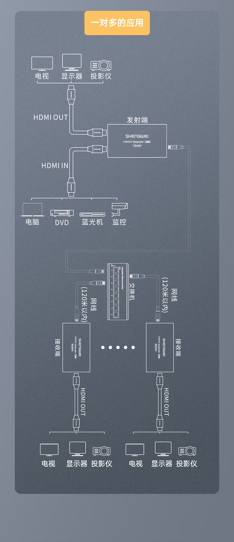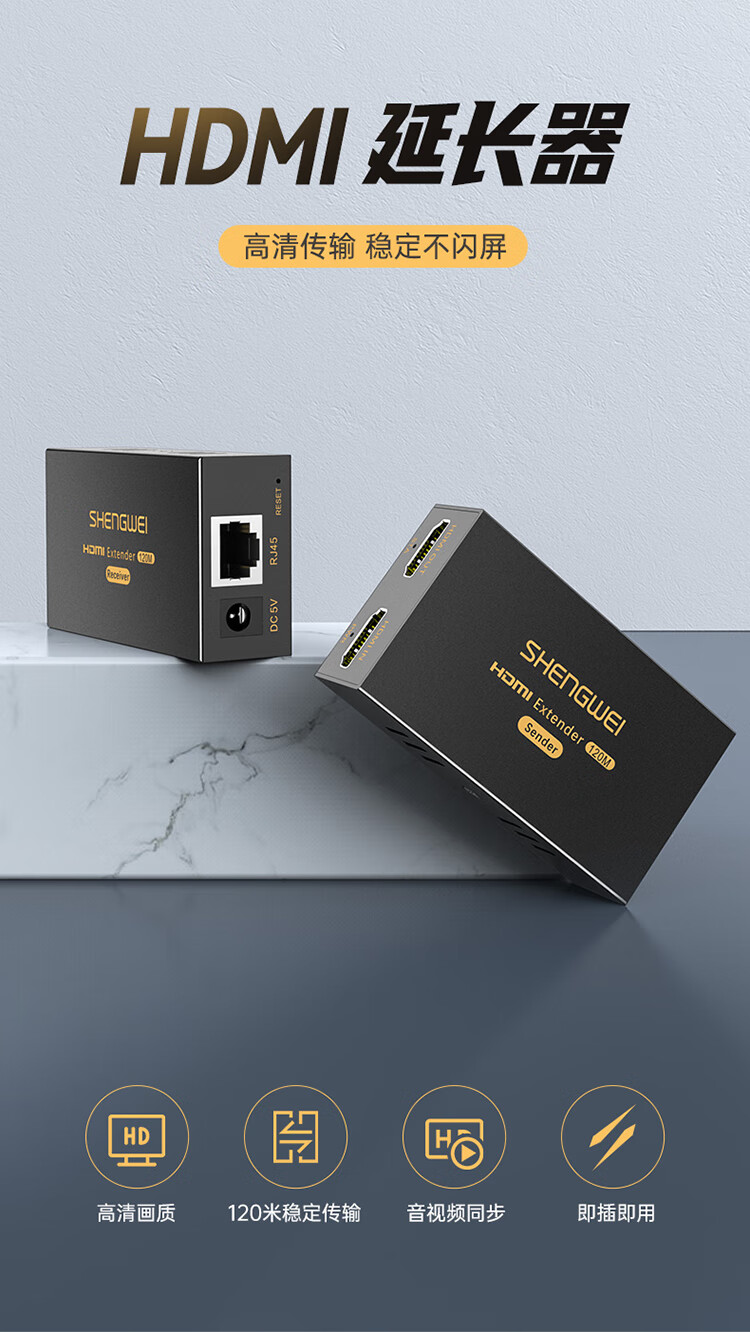 HDMI網(wǎng)絡延長器 RJ45網(wǎng)線傳輸高清HDMI 120米網(wǎng)線延伸信號放大器 一對 勝為DH2120AB