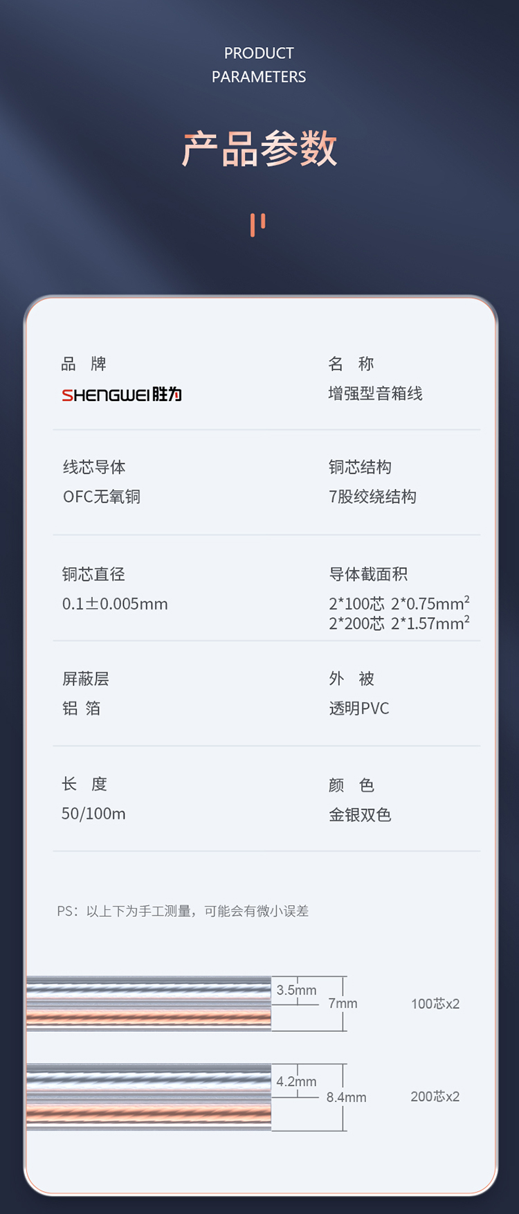 發(fā)燒級音箱線 功放車載線增強(qiáng)型屏蔽抗干擾純銅 勝為 200芯100米