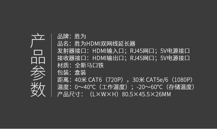 勝為 HDMI延長(zhǎng)器 轉(zhuǎn)RJ45網(wǎng)口轉(zhuǎn)換器 60米網(wǎng)線延伸帶信號(hào)放大 HEC-1045AB