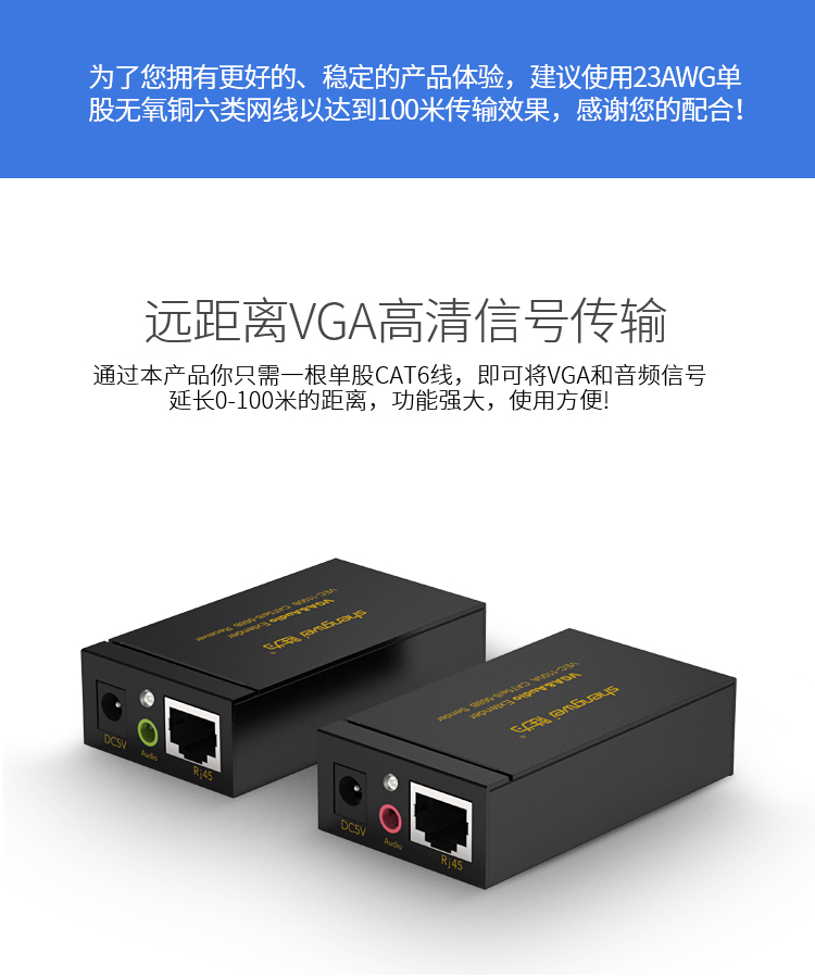 VGA延長器 VGA轉(zhuǎn)RJ45網(wǎng)線延伸器100米 勝為 VGA自動延長器帶音頻 VEC-1100AB