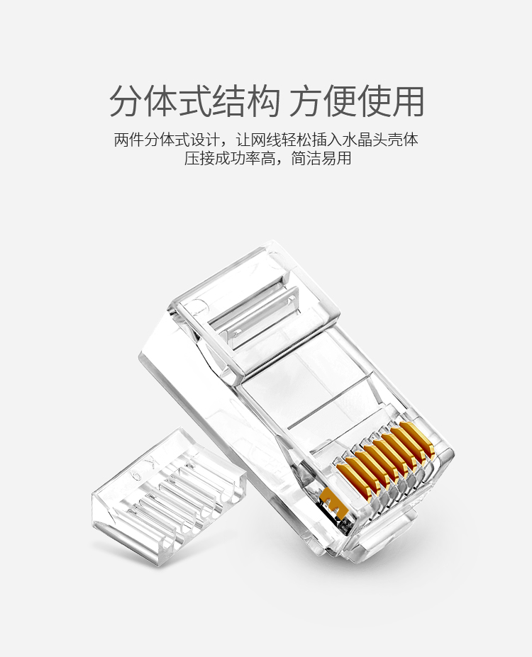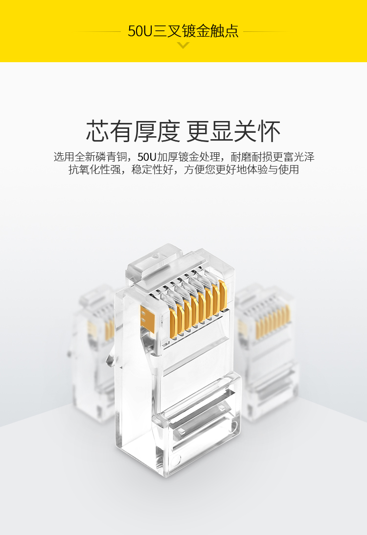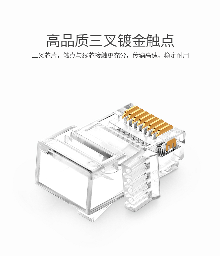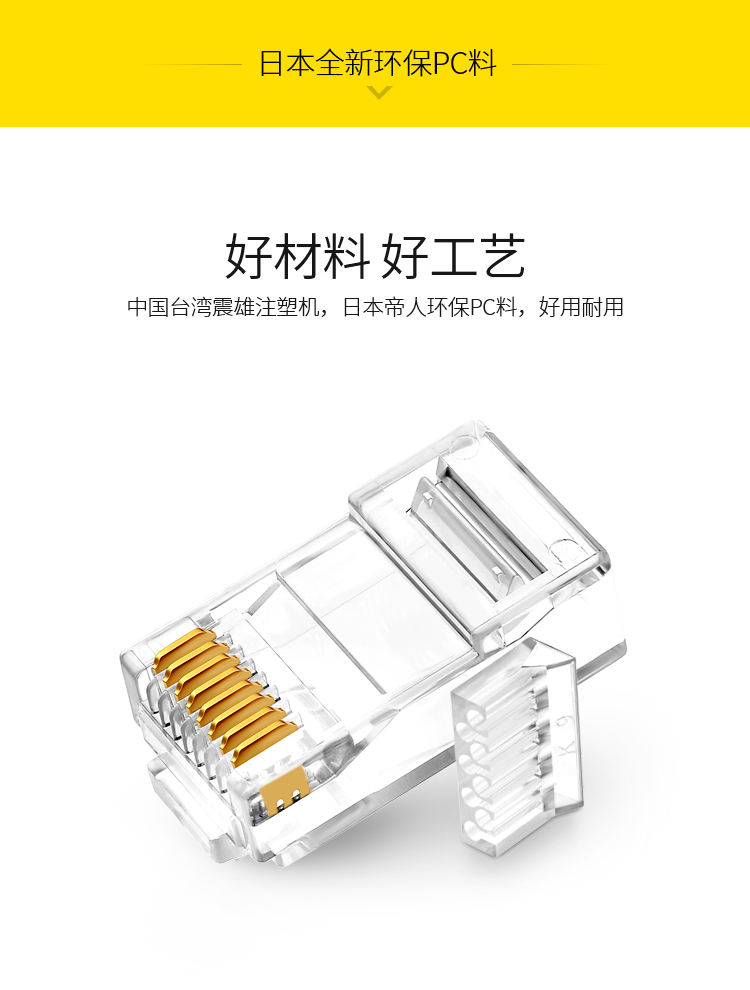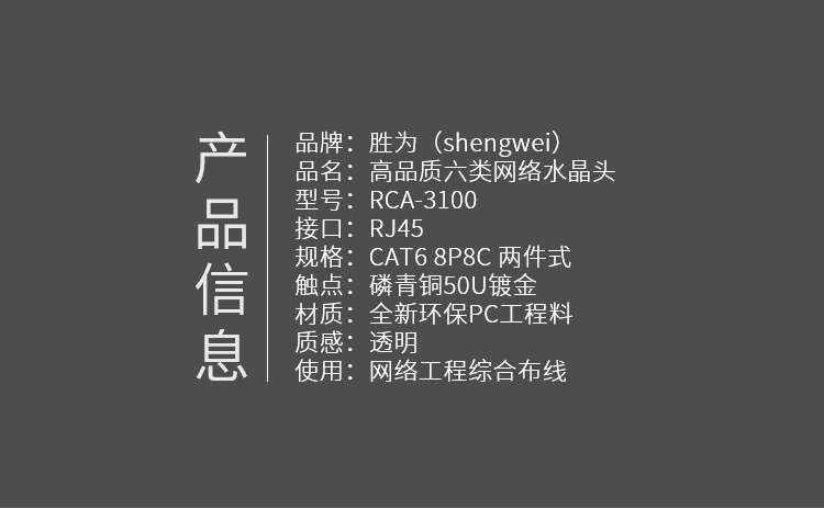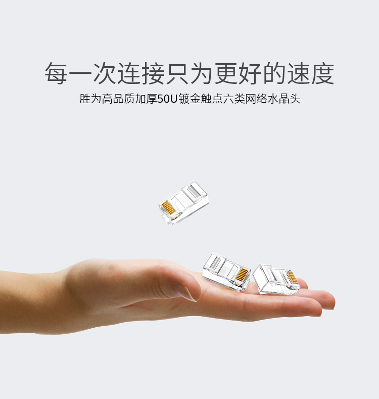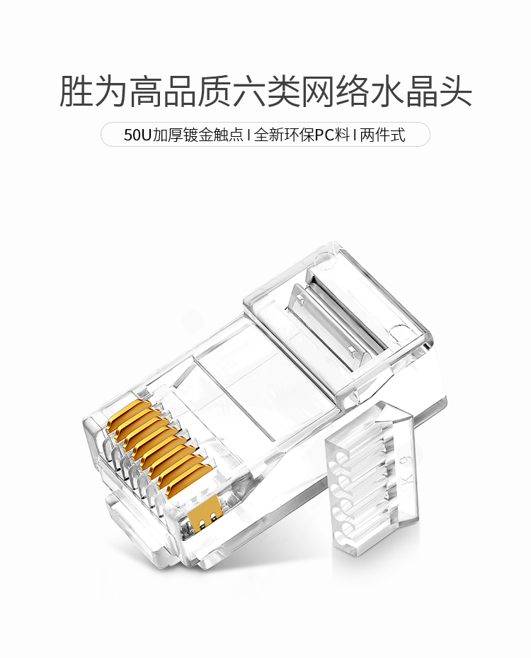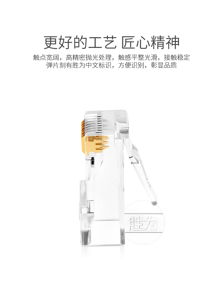 六類水晶頭 100個/盒 勝為 千兆純銅50U鍍金接頭?RCA-3100