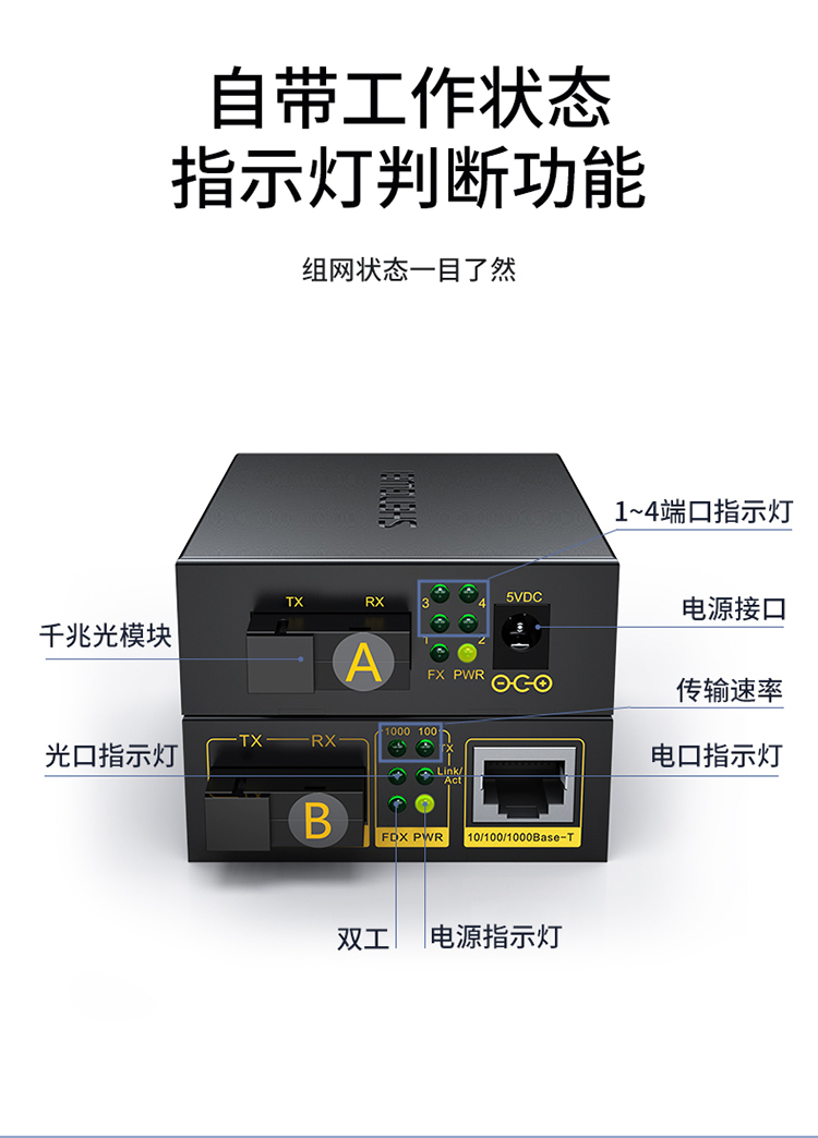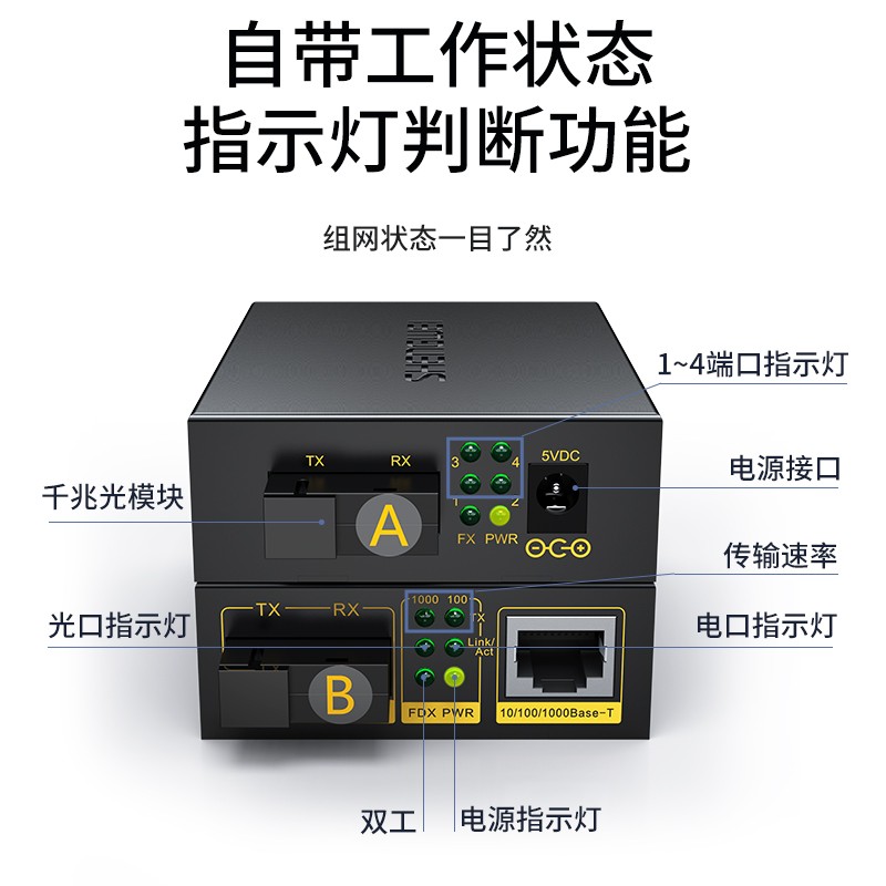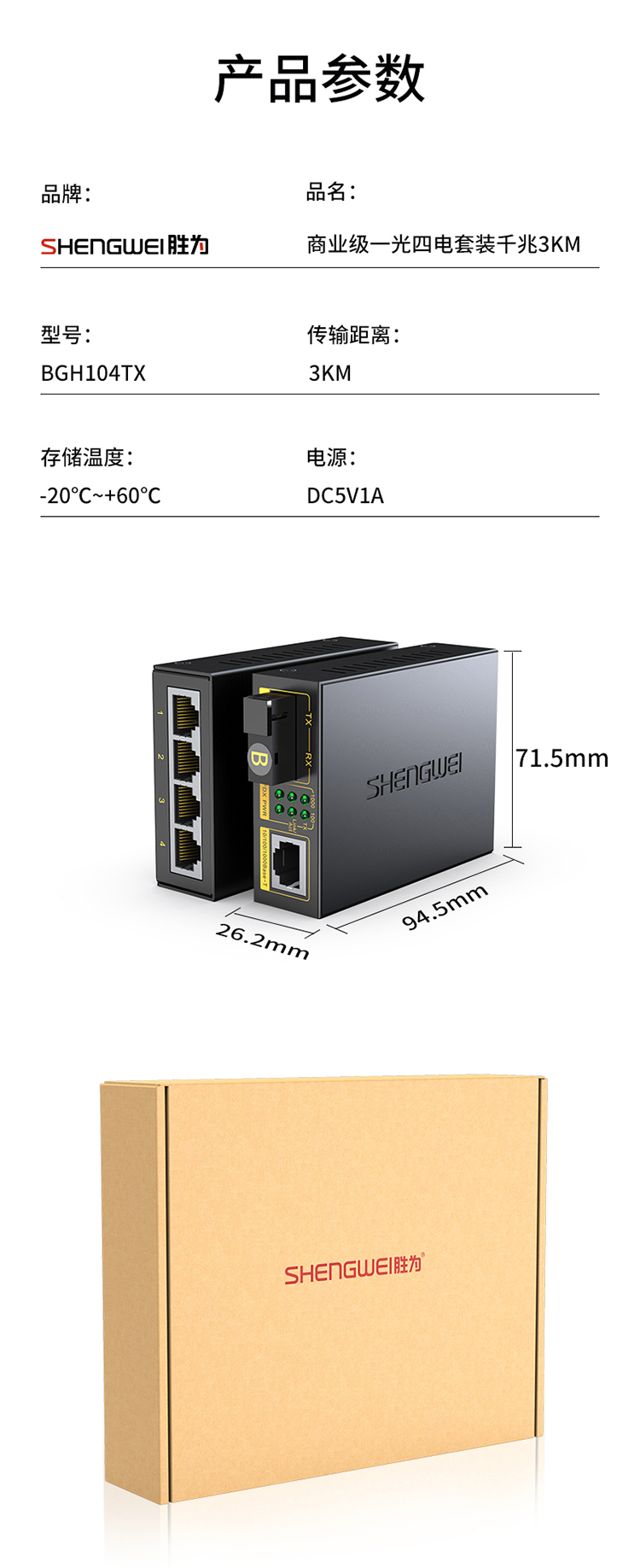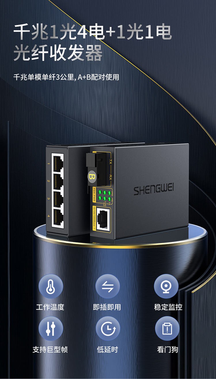 1光4電千兆單模單纖 一對裝 勝為SC口光纖收發(fā)器 3KM BGH104TX