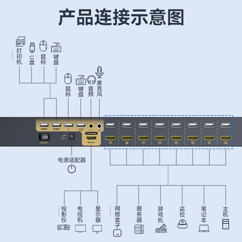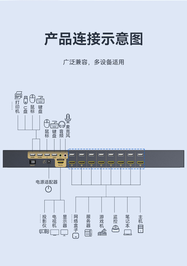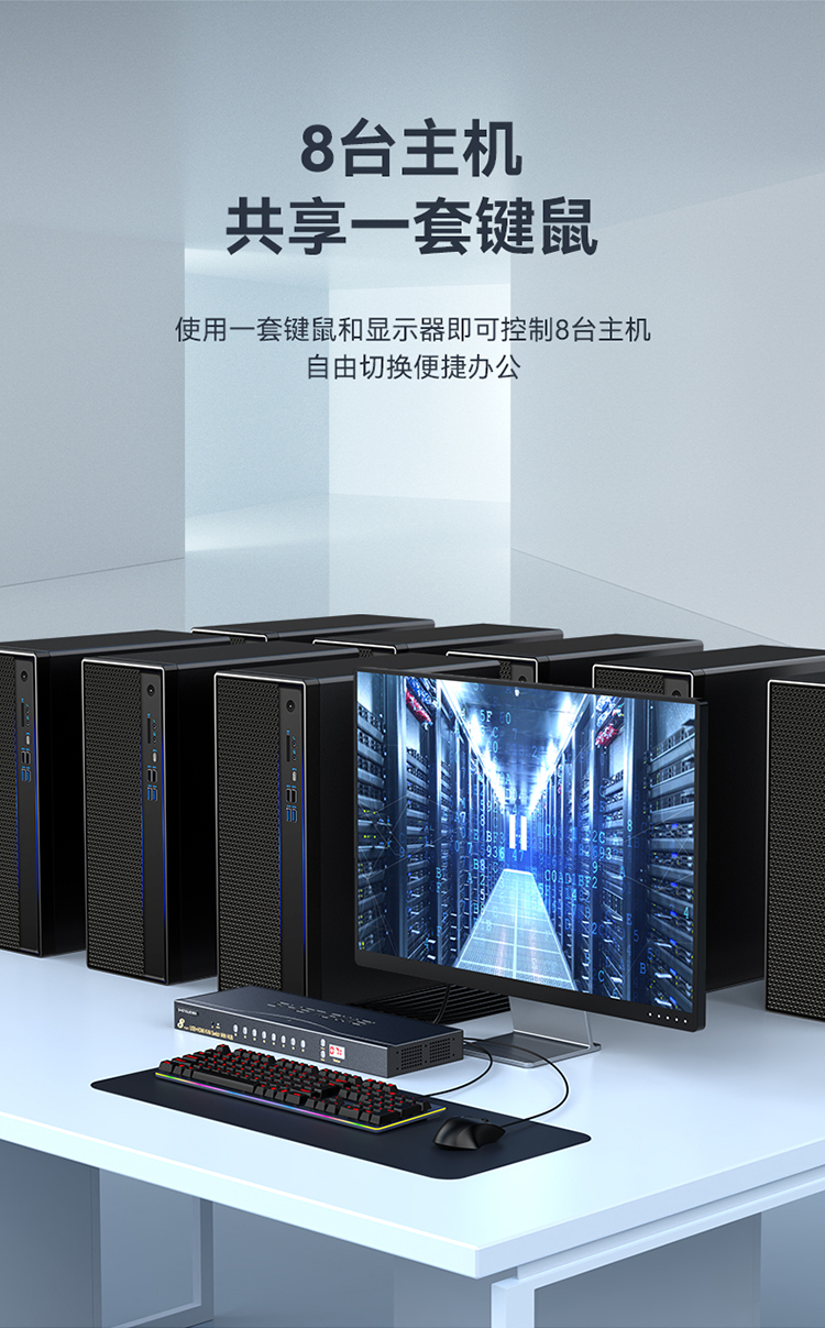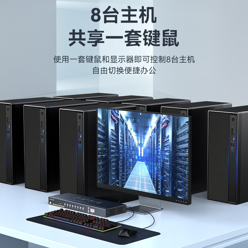 KVM切換器8口 8進(jìn)1出HDMI轉(zhuǎn)換器 勝為USB高清視頻電腦鍵鼠共享器 KS-7081H