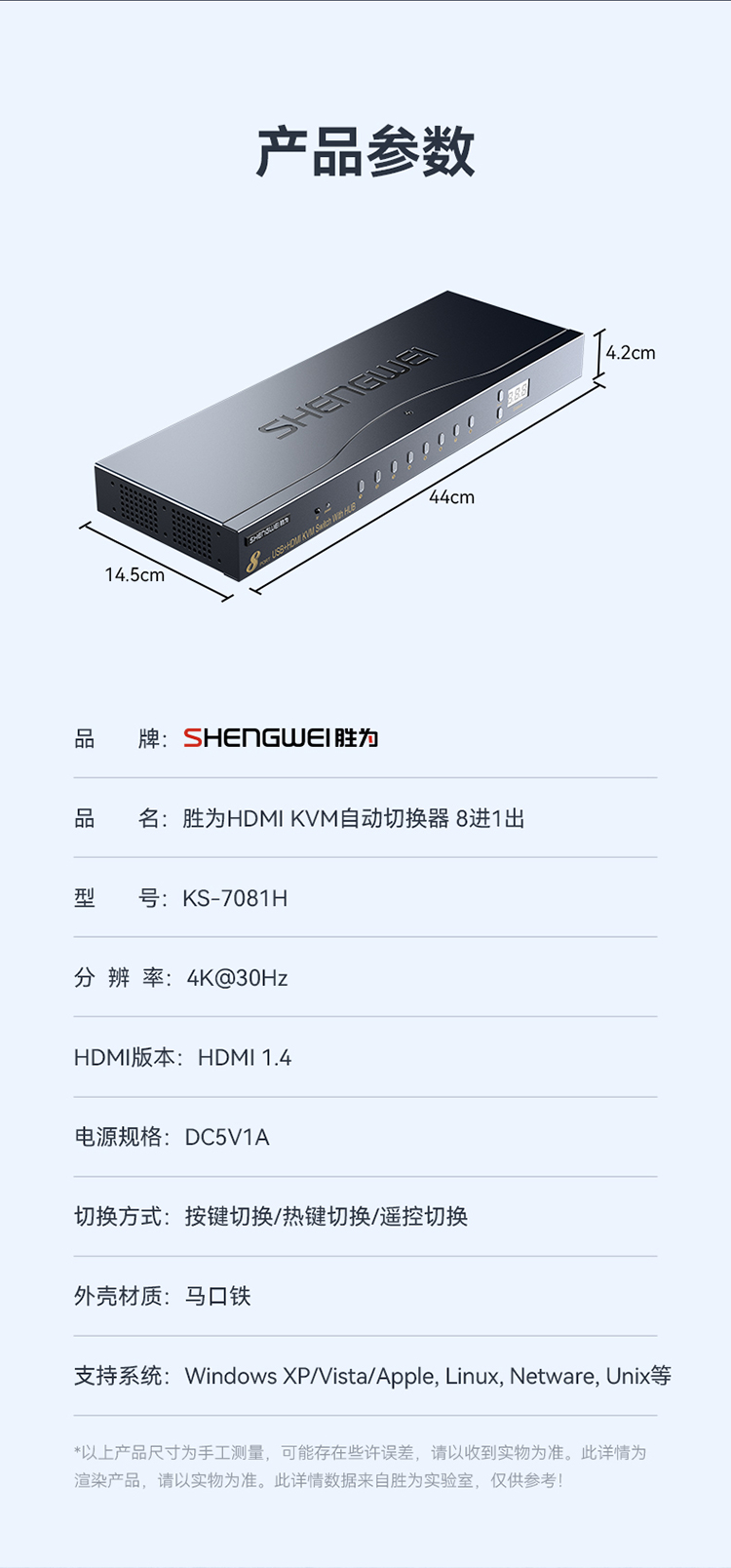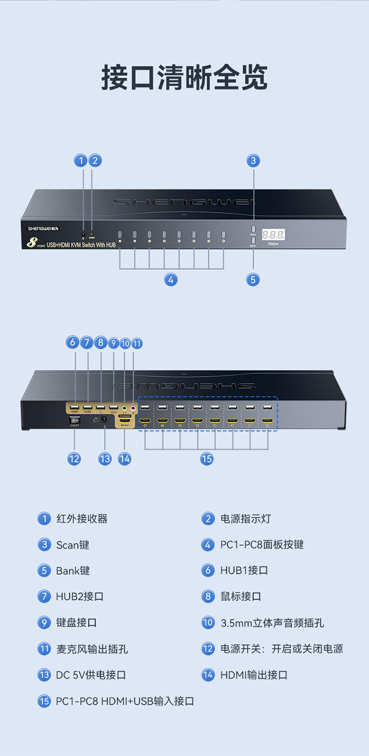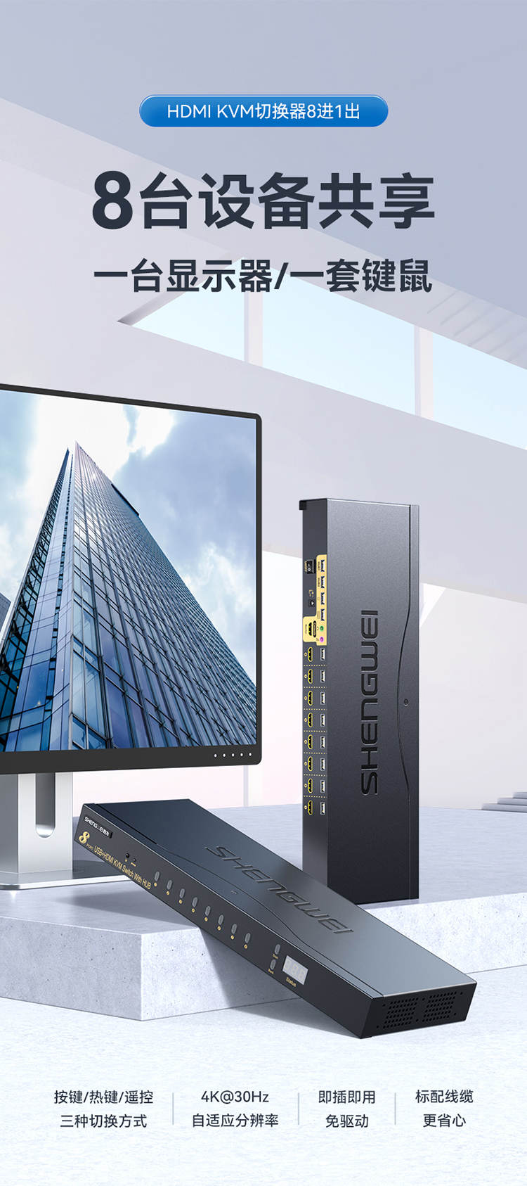 品名:勝為8HDMI+USB+音頻KVM切換器