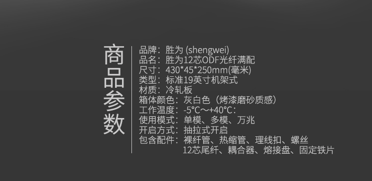 勝為12芯ODF光纖配線架 LC多模萬兆OM3滿配19英寸抽拉機架式1.2mm冷軋板 ODF-1012L-O