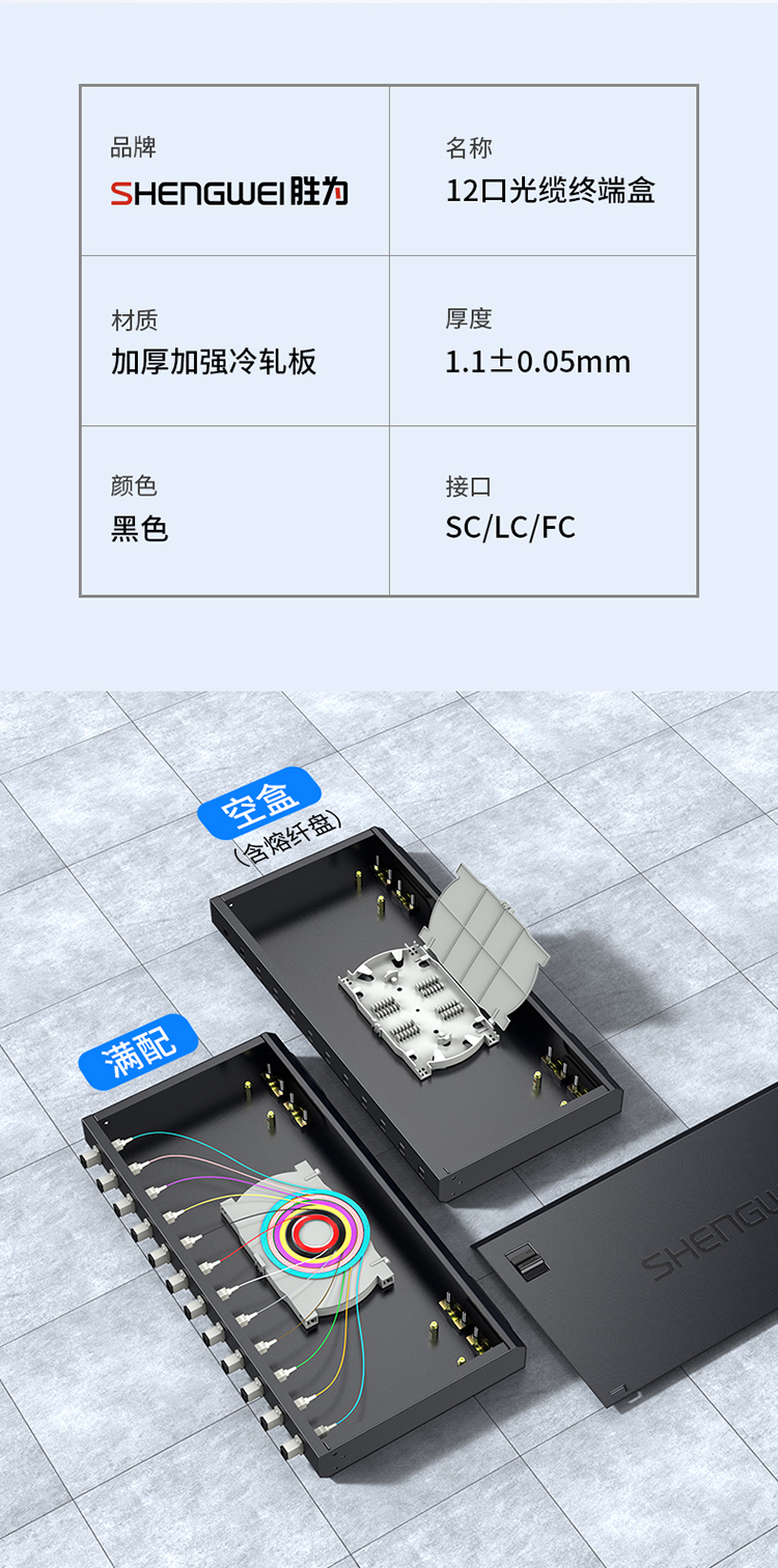 光纖終端盒12口SC多模62.5/125滿配 尾纖光纜熔接盒 FBO-112S-M