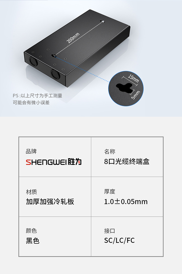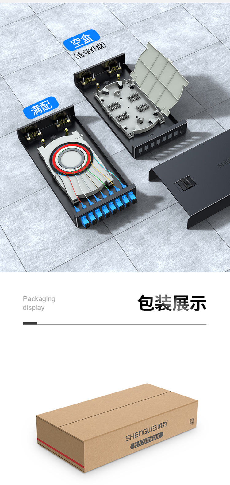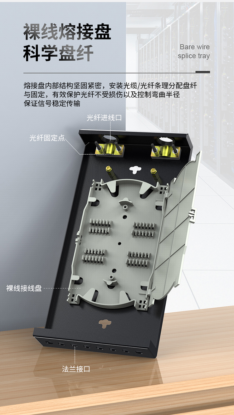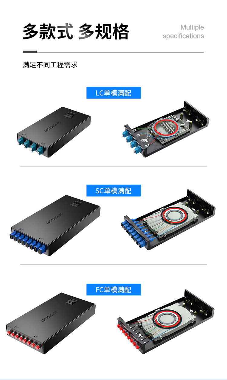 光纖終端盒8芯LC單模9/125滿配尾纖光纜熔接盒通用光纖續(xù)接盤配線架FBO-108L-S