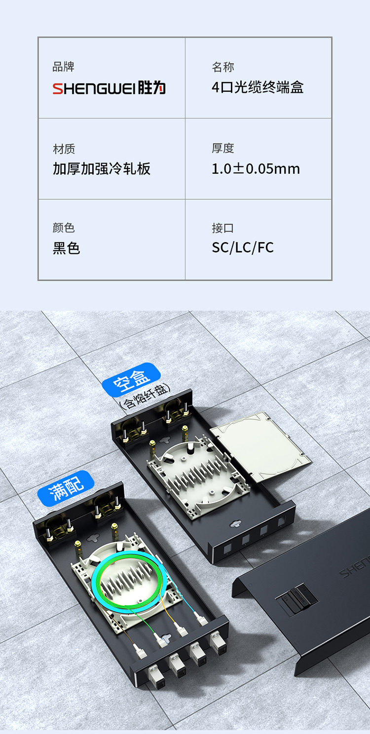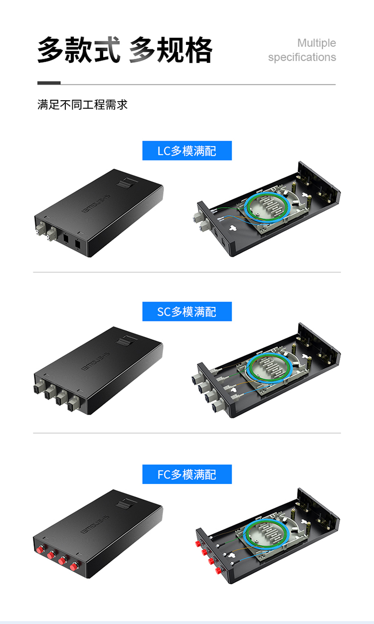 光纖終端盒4芯LC多模62.5/125滿配尾纖光纜熔接盒 FBO-104L-M